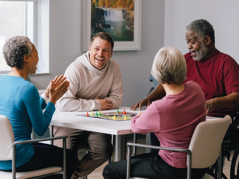 Lunch is served in the dining room, consisting of your choices from the menu, following recommendations from your doctor and dietitian. Your nurse will administer any treatments and medications as needed. Your therapy sessions will continue into the afternoon. Your schedule can be modified as necessary to include breaks. Your nurse will continue to check on you throughout the day.